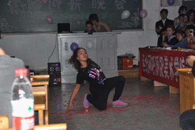 接着各种节目轮番登场,异彩纷呈,魅力四射。独唱《我只在乎你》掀起了晚会的第一个高潮,紧随其后的语言类节目《三句半》也毫不逊色。最令观众拍手叫绝的节目是由大一新生为师生奉上的歌曲串烧《换大米》,在音乐和动作的完美结合下,笑点频发,场面甚是热烈。