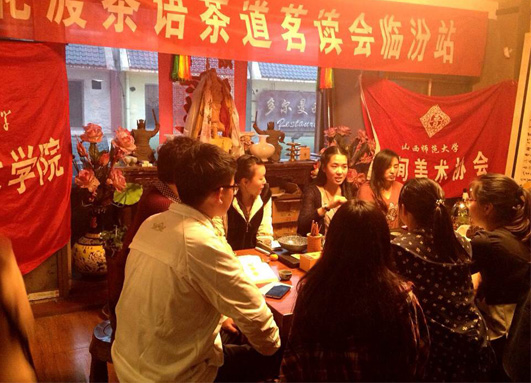 此次活动是院团委携手海峡茶道茗读会联合举办的。海峡茶道茗读会是促进和增强海峡两岸茶文化认识、交流,在全国二三十个城市范围内,定期同步开展的非官方正式活动,内容覆盖海峡两岸茶人、茶事、茶企、茶产业、茶文化等方方面面。通过读书品茶的形式完成每期活动主题的研究和探讨,抒发茶人见解,汇集文化思想,并出书成册,便于展示和交流。此次借由临汾接力的机会,同人动漫