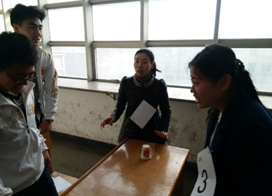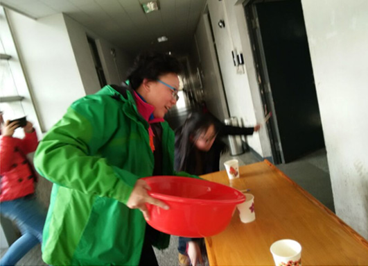 工会、团委于3月8日下午3点举行了丰富的妇女节活动,让女教职工们享受到了作为女性的幸福和快乐,体会到学院的关怀与爱护。活动共分两个:一是“十号教学楼间的激情奔跑”。该环节以“美丽健康动起来”为口号,采用现今流行的“奔跑吧兄弟”闯关的形式,将女教职工分为红黄蓝三支队伍,依次完成在各楼层设置的游戏关卡,进行闯关。游戏包括“大象鼻子”、“跳绳不是跳绳”“推纸杯游戏”和“寻找有缘人”,各位参赛者在冲关中热情高涨、活力四射,动作敏捷,最终蓝队在闯关中用时最短,获得胜利。