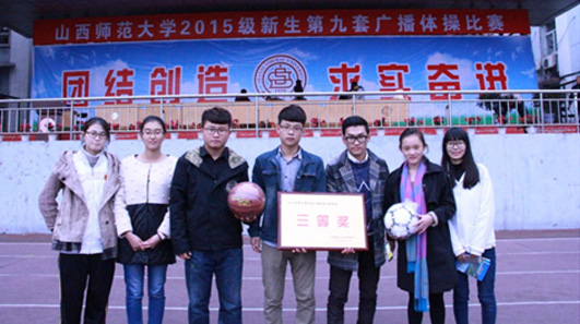 举行的我校2015级新生广播操比赛中,以9.66分的成绩获得本次广播操比赛甲组第三名的优异成绩。