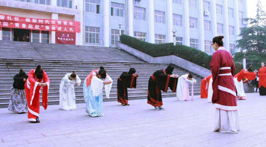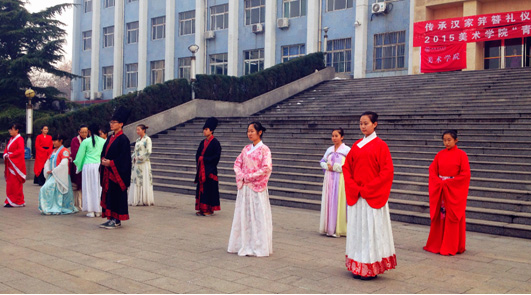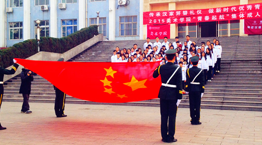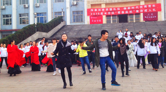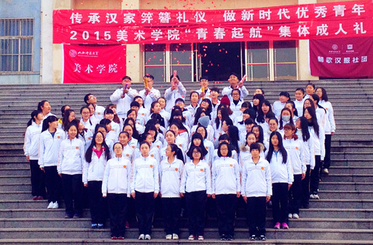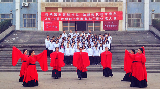 2015“青春启航”集体成人礼于下午3:00在我校巨人广场精彩开礼。此次成人礼以“传承汉家笄簪礼仪,做新时代优秀青年”为主题,共分为汉代传统形式和现代形式两部分。