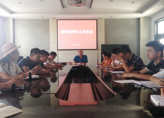 召开2016-2017学年新学期学生工作会议,参加会议的有各年级辅导员、各班班长团支书以及全体学生党员,会议由院党委副书记李豪、院学工组组长李豪老师主持。