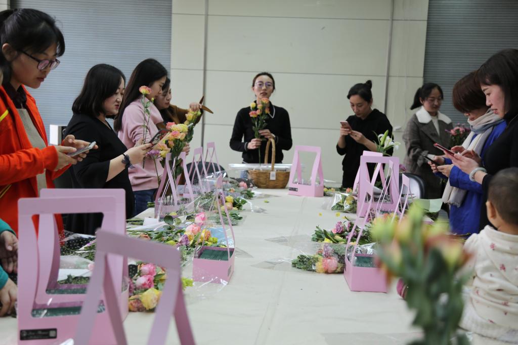 女教职工送上节日的祝福,并对老师们的辛勤付出表示感谢。伴着悠扬的古琴声,宋雪梅老师为大家讲授茶道知识,从水温、选茶、闻茶等方面一一演示,带领老师们品茶香,悟人生,现场洋溢着浓郁的茶趣与幽雅的气息。品茗结束后,老师们在插花师的帮助下进行插花,朵朵鲜花经各位女老师的巧手修饰和插剪,一个个精美的花篮应运而生。整场活动,各位老师热情高涨、欢笑声声,气氛热烈。