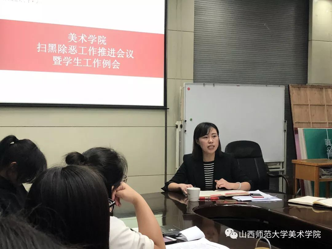 于十号楼四层会议室召开了扫黑除恶专项工作推进会暨九月份学生工作例会。学院全体辅导员出席会议,团委学生会干部、各班班长学生代表参加了会议,会议由院党委副书记庞丽娟主持。