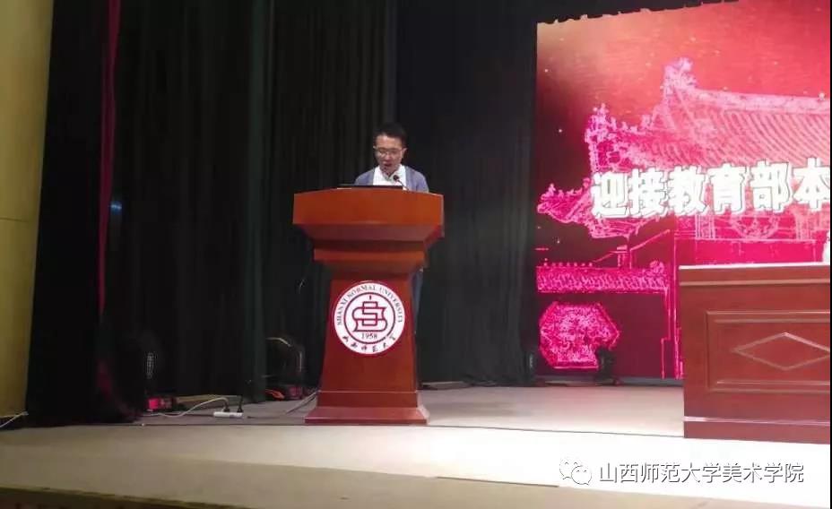 大会第四项,学生代表李渊宣读倡议书。他代表全体学生表示要提高评估意识,积极参与评估;端正学习态度,展现良好学风;遵规守纪,文明礼貌,打造优质校园;夯实专业基础,拓展素质,迎接专家评估。并表示美院全体学生会以最佳的精神状态,最深的文化素养,最强的校园底蕴,最优秀的成绩为我校本科审核评估工作添砖加瓦。
