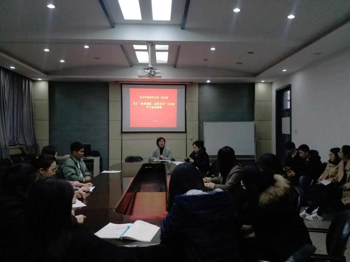 研究生第一党支部于10号楼四层会议室召开了“改革创新、奋发有为”大讨论学习动员部署会议。党支部书记庞丽娟主持会议,高雅言老师及全体学生党员参会。