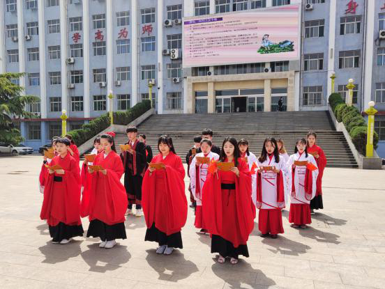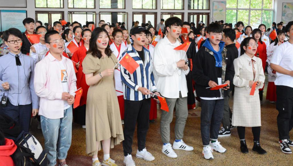“朝歌汉服社”与院合唱队共计70名团员青年,身着汉服、校服,手持竹简、国旗在学校巨人广场、莳英园、蘑菇亭、学生食堂等多个场所开展诵古诗词、读习近平总书记青年寄语、唱响《我和我的祖国》系列快闪活动。活动受到了黄河新闻网、中国青年报等多家媒体的报道。