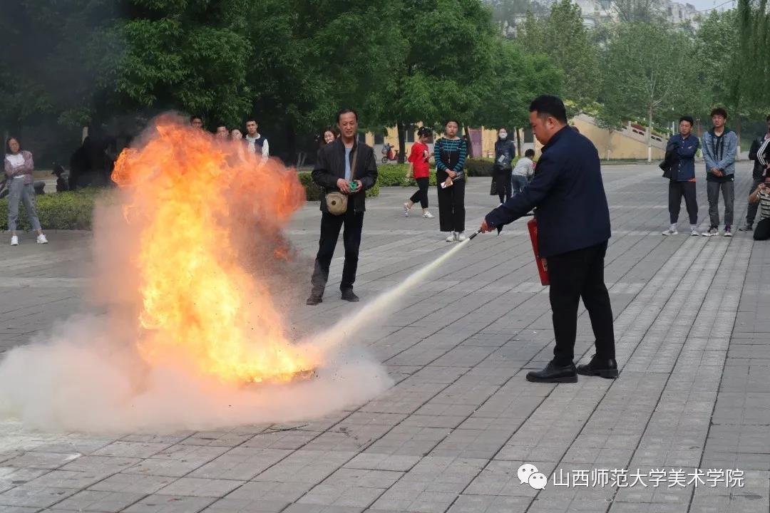 于4月21日举办了消防安全应急演练。党委副书记庞丽娟、团委书记杜丰之以及美院部分师生参加了此次消防安全演练。