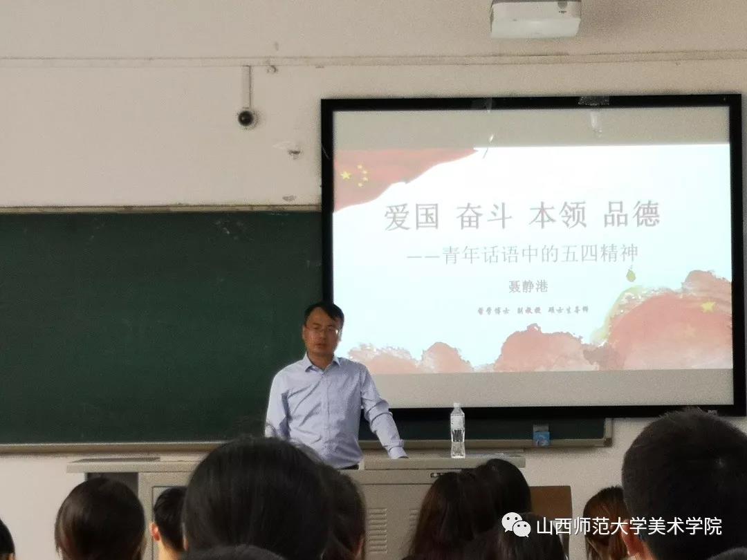 接下来,由马克思主义学院聂静港老师为大家讲授了“爱国、奋斗、本领、品德”——青年话语中的五四精神。以辛亥革命、新文化运动为引导,结合习近平总书记五四精神的重要讲话,指出当代青年应当练就过硬本领,锤炼品德修为,主动承担的历史所赋予的责任和使命!