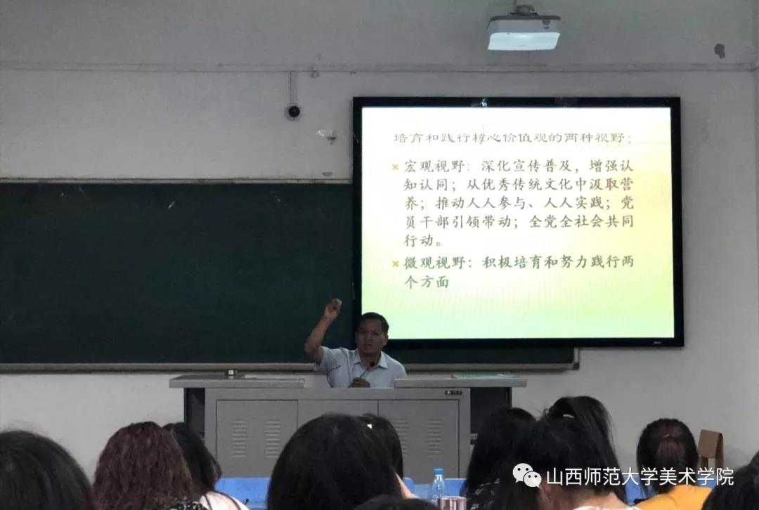 5月17日晚19:00书法学院许国宝老师讲授了“社会主义核心价值观”,勉励大家在日后的学习工作中坚守“富强、民主、文明、和谐、自由、平等、公正、法治、爱国、敬业、诚信、友善”的二十四字社会主义核心价值观,努力完成自己的工作,为共产主义事业贡献自己的力量。