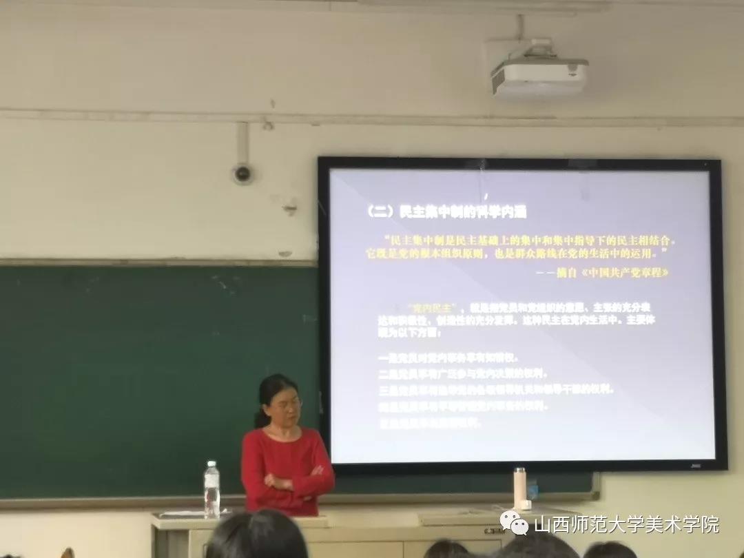 5月15日晚 19:30书法学院党委副书记霍红梅为同学们讲授了培训的第一课“党的性质、宗旨和纲领”,结合党的历史发展和现实状况,让同学们更加深刻的认识党,广泛的调动了大家的积极性。