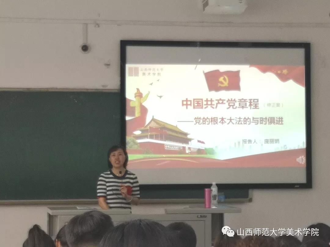 党委副书记庞丽娟老师讲授“中国共产党章程(修正版)”,她通过解读党章的发展历程、党章的概述、党章的基本架构等内容,唤醒同学们的党章意识,使其坚定共产主义理想信念,不忘初心永跟党走。