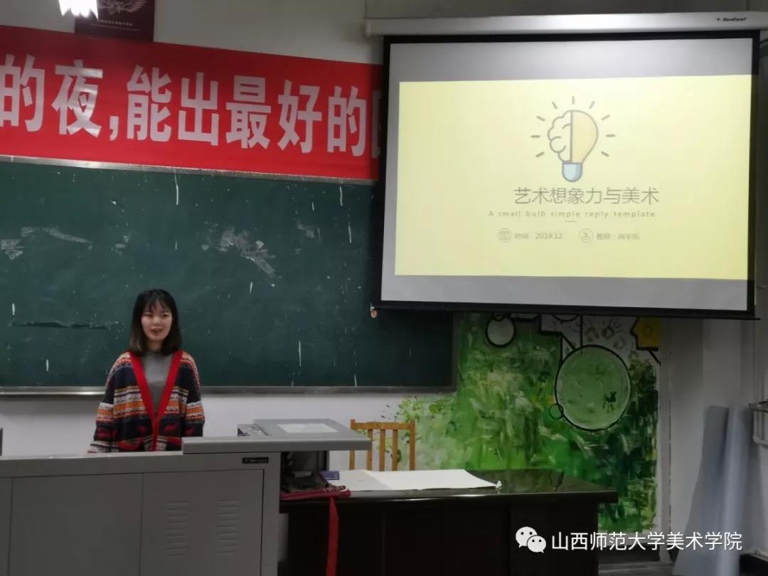 比赛共分为两个环节,首先,比赛开始,每位选手用PPT展示的方式,为大家呈现了一堂既有趣,又有益的美术课。他们都展现出自己授课时的独特风格,用生动活泼的语句吸引着在场的每一位同学。