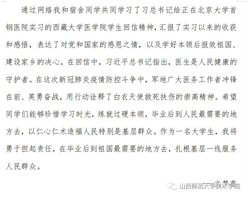 各学生党支部第一时间组织党员进行线上专题学习,并利用学院微信公众平台分享学生党员关于回信精神的心得体会。