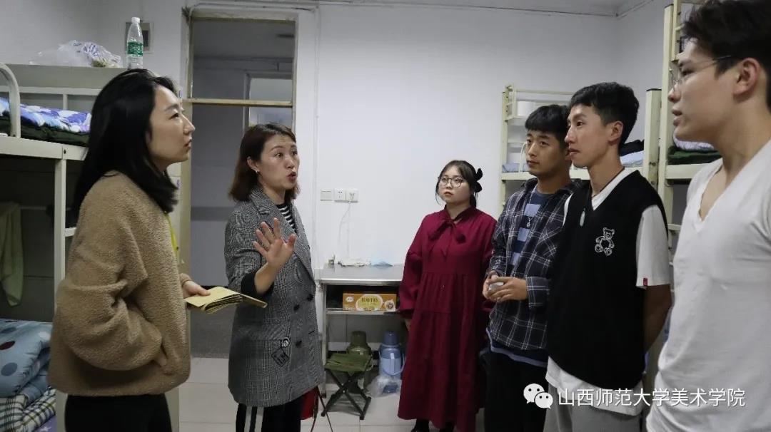 党委书记史晋奎、院长金小民、党委副书记庞丽娟、专职辅导员池圆圆、新生辅导员高艺及学生党员一同走访了新生宿舍,为新入校报到的20级同学带去问候与关心。