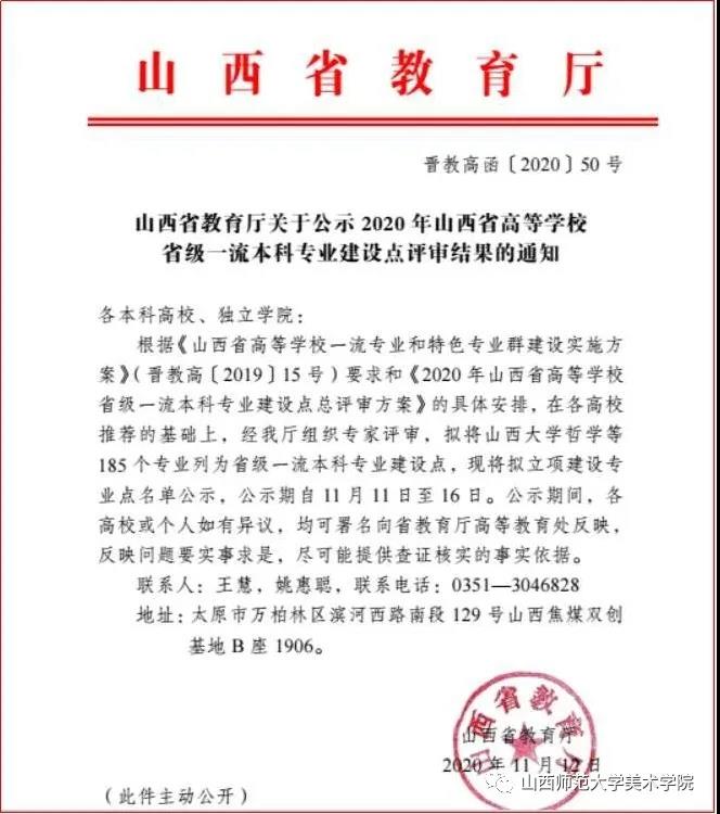申报的美术学专业、视觉传达设计专业成功入选山西省高等学校省级一流本科专业建设点。