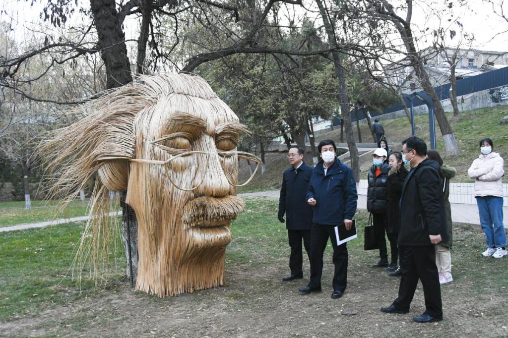 在思政文化园开展了以创新柳编公共装置艺术为主的课改成果作品展,靓化校园人文景观,助力思政文化园建设。展览吸引了众多师生驻足观看。校党委副书记高峰、党委宣传部部长薛珠峰、人事处处长赵春平、学生处处长李三红、戏剧学院院长延保全等领导出席展示活动,饶有兴趣的体验了柳编艺术作品,对同人动漫