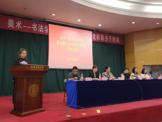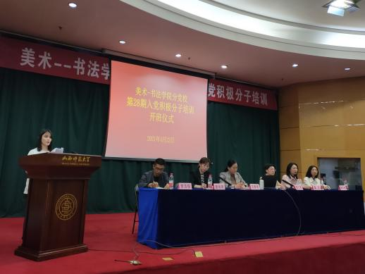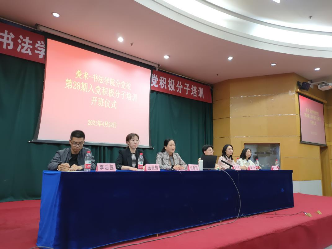 4月22日晚,美术-书法学院分党校第28期入党积极分子培训班开班仪式暨培训第一课在科学会堂二层报告厅举行。出席开班仪式的有同人动漫