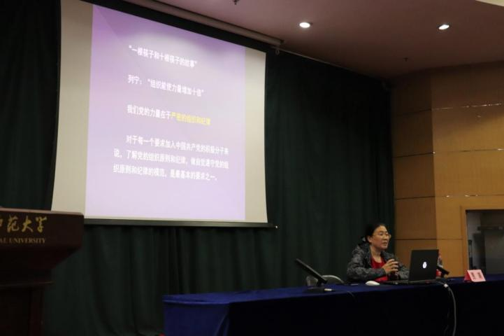 专职辅导员贾娟讲授“党的组织原则和党的纪律”,分为“党的组织原则”和“党的纪律”两部分。以小见大、由浅为深的为学生全面剖析了其深刻内涵。使其更深入了解中国共产党的组织原则及纪律,对每一位积极分子来说,做自觉遵守党的组织原则和纪律的模范,继承并发扬党的优良传统和作风,是最基本的要求之一。
