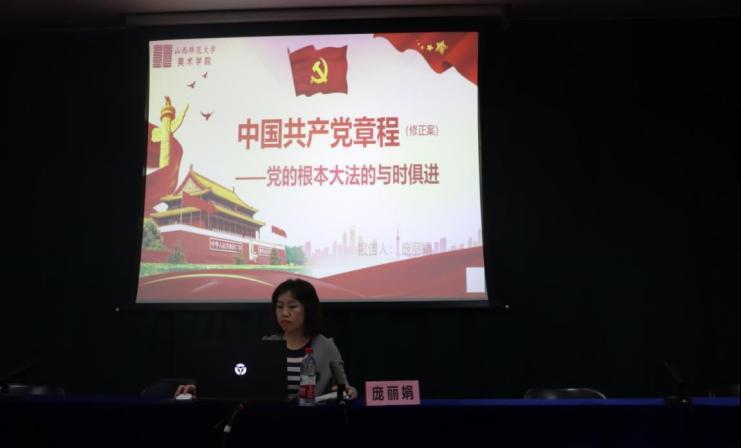 4月27日晚19:00书法学院党总支副书记霍红梅为学生讲授“中国共产党的性质、宗旨、纲领、指导思想”。使同学们加深了对党的认识,增强了对党的感情,更加忠诚于党的事业,更加坚定了同学们入党的决心。