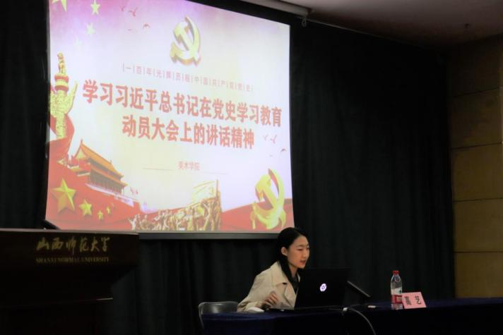 专职辅导员高艺为同学们讲授了“学党史、悟初心、担使命—学习习近平总书记在党史学习教育动员大会上的讲话精神”,旨在引导青年学生要深刻铭记中国共产党百年奋斗的光辉历程,深刻认识中国共产党为国家和民族作出的伟大贡献,深刻感悟中国共产党始终不渝为人民的初心宗旨。