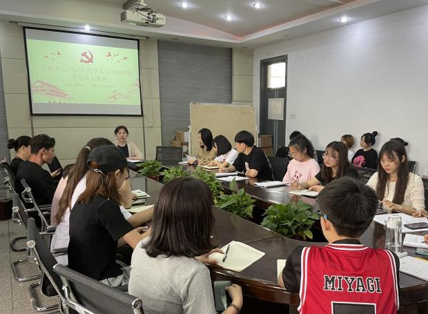 会前,庞丽娟副书记带领大家学习了习近平总书记在清华大学考察及在师生座谈会上的重要讲话精神,她强调,习近平总书记的讲话对广大青年提出了爱国爱民、锤炼品德、勇于创新、实学实干的重要要求,充分体现了我们党对青年一代的重视和关怀,进一步为青年的健康成长、全面发展指明了正确方向,同时也为做好新时代党的青年工作提供了重要遵循。各位学工组成员要坚持把立德树人作为根本任务,着力培养担当民族复兴大任的时代新人,全体学生干部要自觉用中华优秀传统文化、革命文化、社会主义先进文化启智润心,实学实干,用智慧和力量为全面建设社会主义现代化国家添砖加瓦。