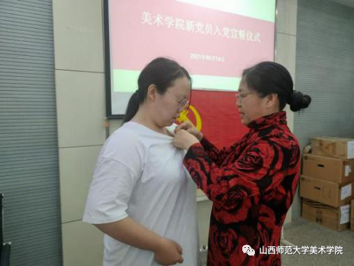 入党宣誓仪式在雄壮的《国际歌》中拉开帷幕。党委委员刘昂宣读新发展党员名单;学院党委委员为新党员佩戴了党员党徽;全体党员肃立面对党旗,在研究生第一党支部组织委员梁琪同志的带领下庄严宣誓。铮铮誓言代表了全体党员对党最忠诚的决心。与会的各位老党员一起参加了宣誓。