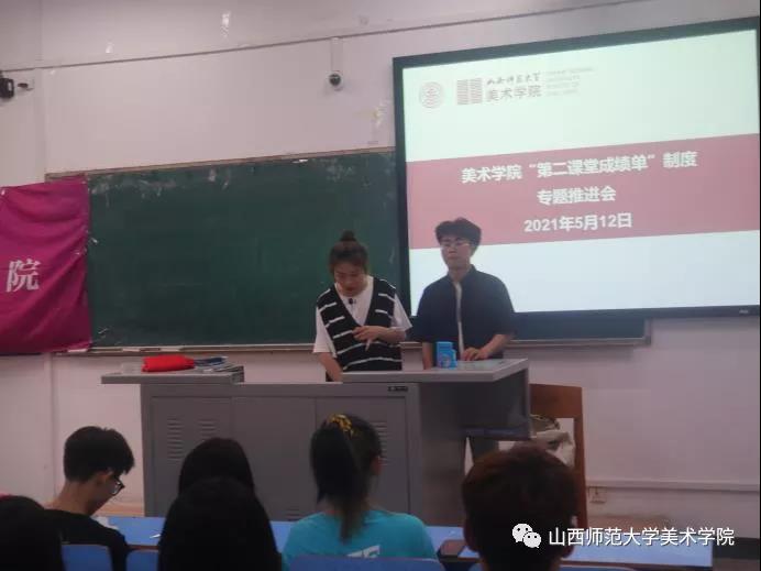 于5月12日下午六点半在10106教室举办“第二课堂成绩单”制度专题推进会,会议由专职辅导员高艺老师主持,大一大二同学参加此次活动。