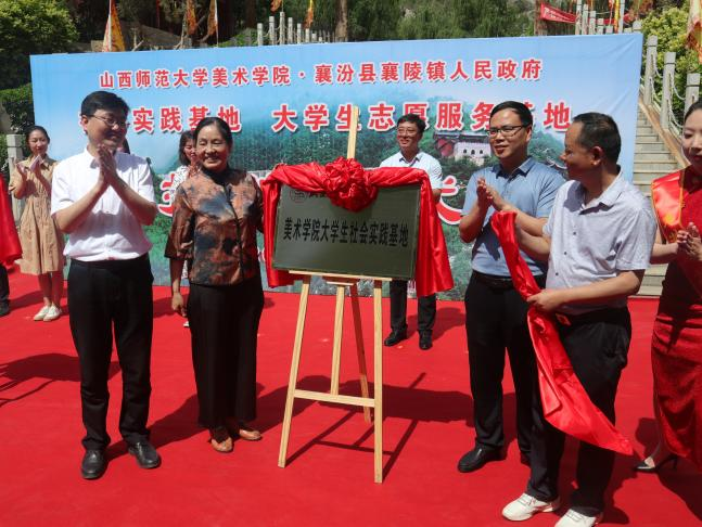 大学生社会实践基地、志愿服务基地揭牌仪式。共青团临汾市委书记范帆、襄陵镇党委书记栗军、襄汾县人民政府副县长李虎山、共青团临汾市委挂职副书记徐洁、广东中惠源投资集团副总裁张铸,同人动漫