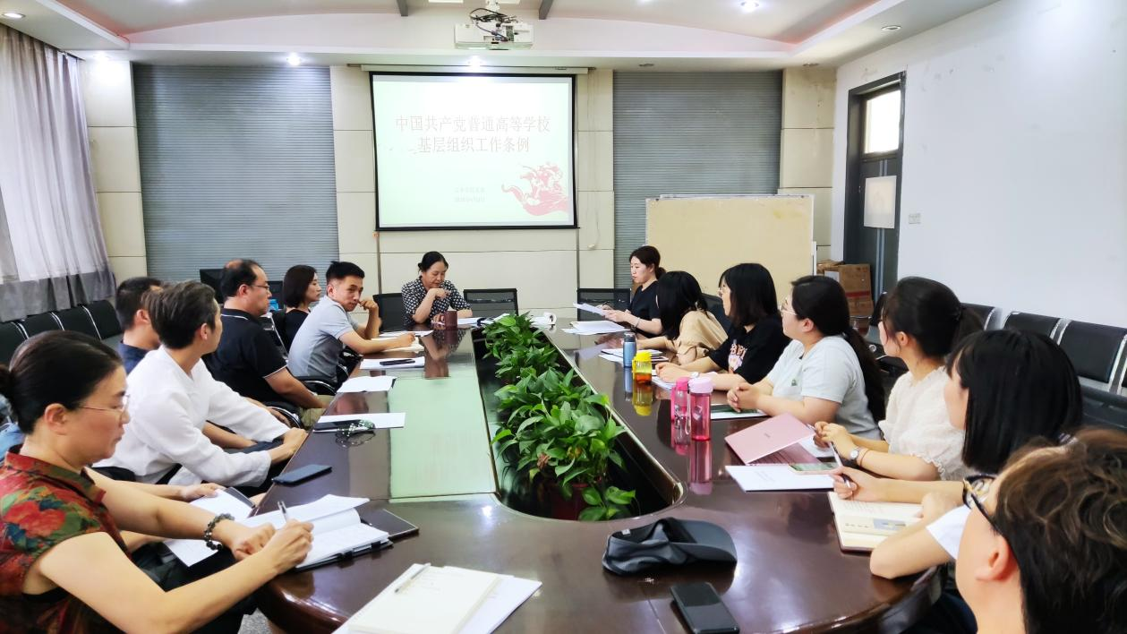 随后,双春梅书记带领中心组(扩大)成员学习《中国共产党普通高等学校基层组织工作条例》。对条例内容、修订背景、指导原则做了阐述,逐章逐条进行了领学和讲解。通过条例的学习,使学院党建工作队伍进一步明确了基层党建的指导思想、工作机制,进一步促进工作人员思想认识,强化了责任担当,将对学院党支部标准化规范化建设起到推动作用。
