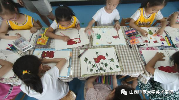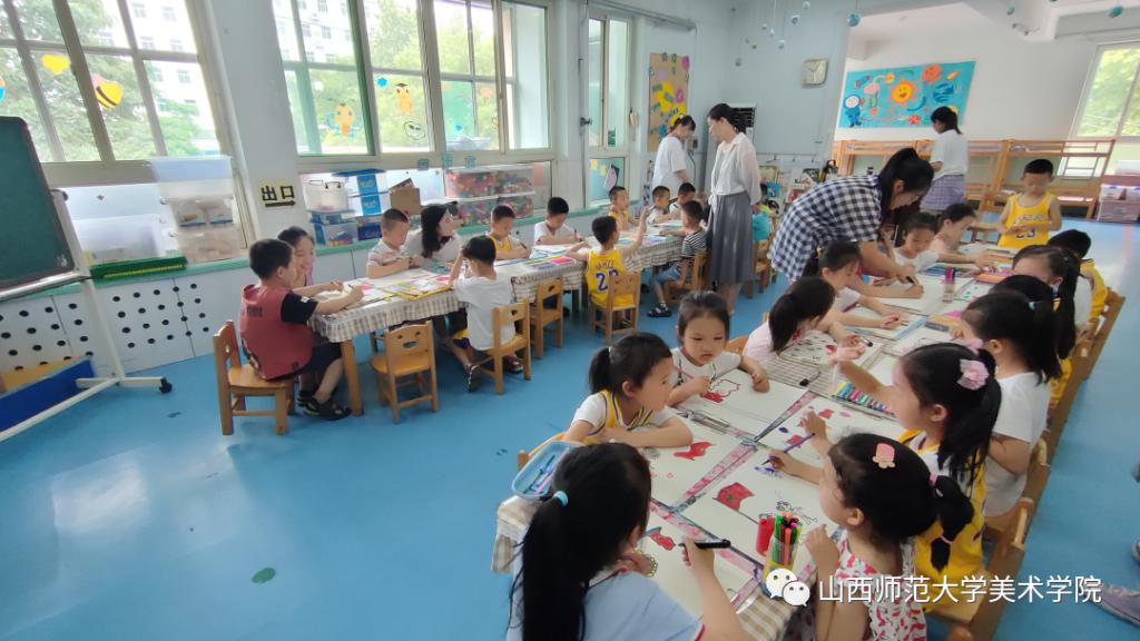 在课堂上,志愿者们结合幼儿年龄特点,采用观影、绘画、讲故事、做游戏等不同方式引导孩子们学党史、颂党情。首先,通过让小朋友观看视频,认识了解国旗、党旗及党的基本知识,进一步增强孩子们对党和国家的认识。随后,志愿者们与小朋友共同观看影片《少年英雄王二小》,讲述英雄故事,感受在革命战争年代英雄们伟大的牺牲和奉献精神,体会现在来之不易的幸福生活。最后,孩子们纷纷用画笔描绘党旗下的幸福生活,感受祖国的辉煌成就,用最朴实最真挚的方式礼赞祖国。