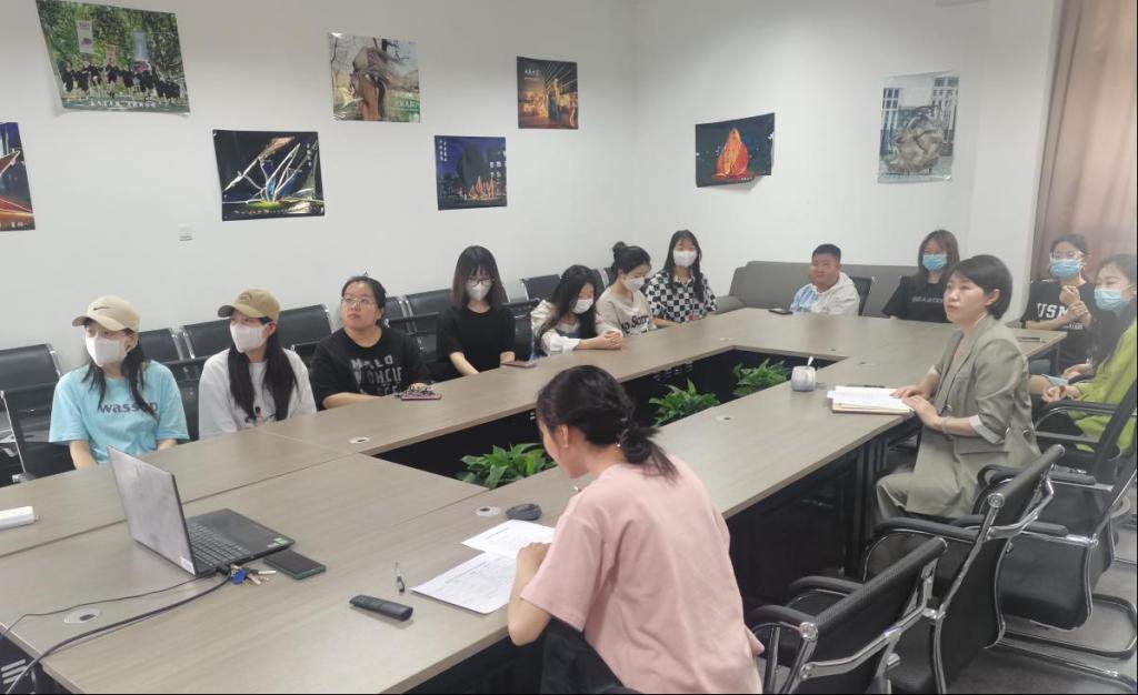 2022届毕业生参加会议,会议由专职辅导员池圆圆主持。