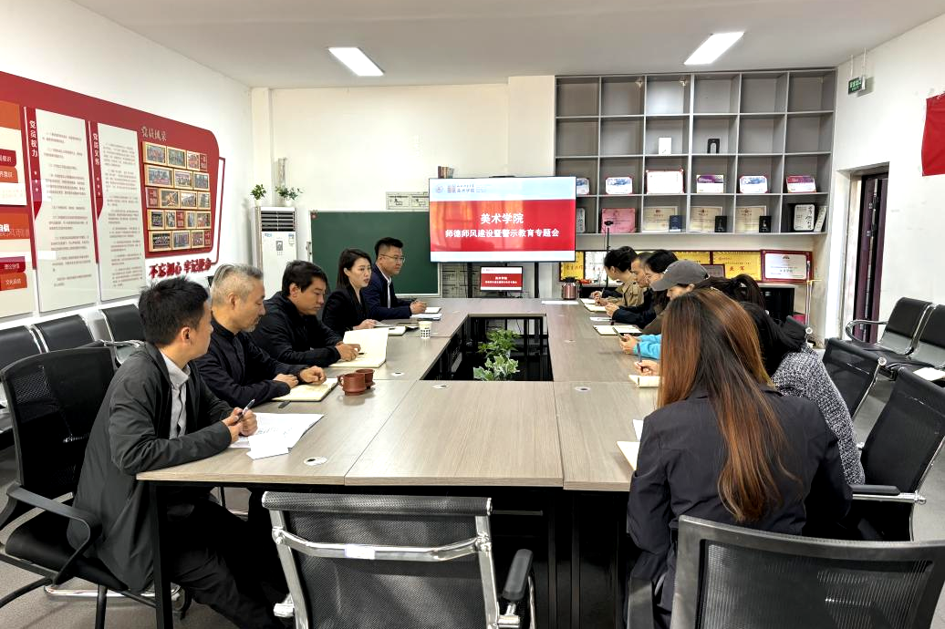 在艺馨苑会议室召开了师德师风建设暨警示教育专题会,学院中层以上领导干部、各教研室主任、全体行政人员参加会议。会议由院党委书记庞丽娟主持。