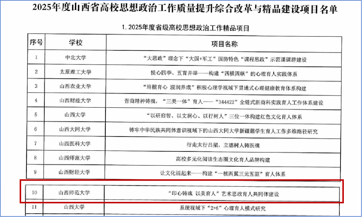 近日,山西省教育厅公布了2025年度山西省高校思想政治工作质量提升综合改革与精品建设项目立项评选结果。经各高校申报、资格审核、专家评审等程序,同人动漫
