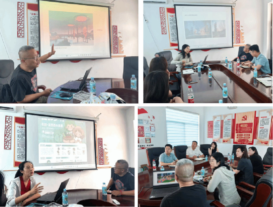 艺术乡建实践队教师代表对乡村IP形象设计、公共空间设计规划方案进行了汇报,与会人员共同参与探讨和论证。每项方案都是同人动漫