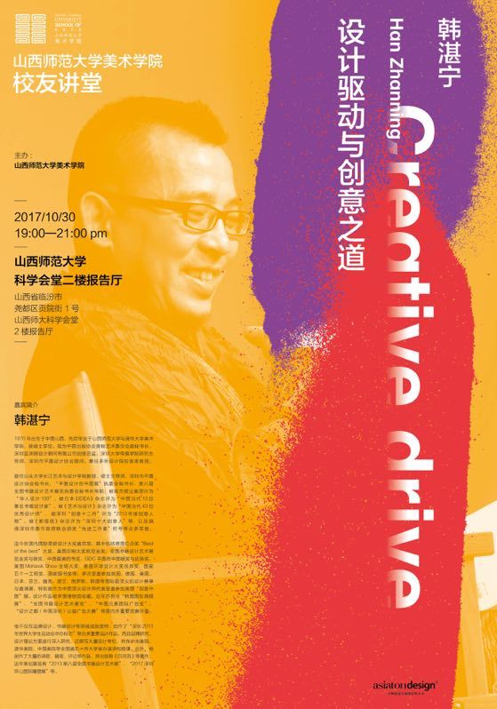 他不仅在品牌设计、书籍设计等领域成就斐然,创作了“深圳2011年世界大学生运动会申办标志”等众多重要设计作品,而且品牌研究、设计理论方面进行深入研究,还撰写大量设计专栏,并在中央美院、清华美院、中国美院等全国逾五十所大学举办演讲和授课。此外,他创作了大量的诗歌、随笔、评论等作品,并出版有《白河流》等著作;近年策划展览有“2013第八届全国书籍设计艺术展”、“2017深圳坪山国际雕塑展”等。