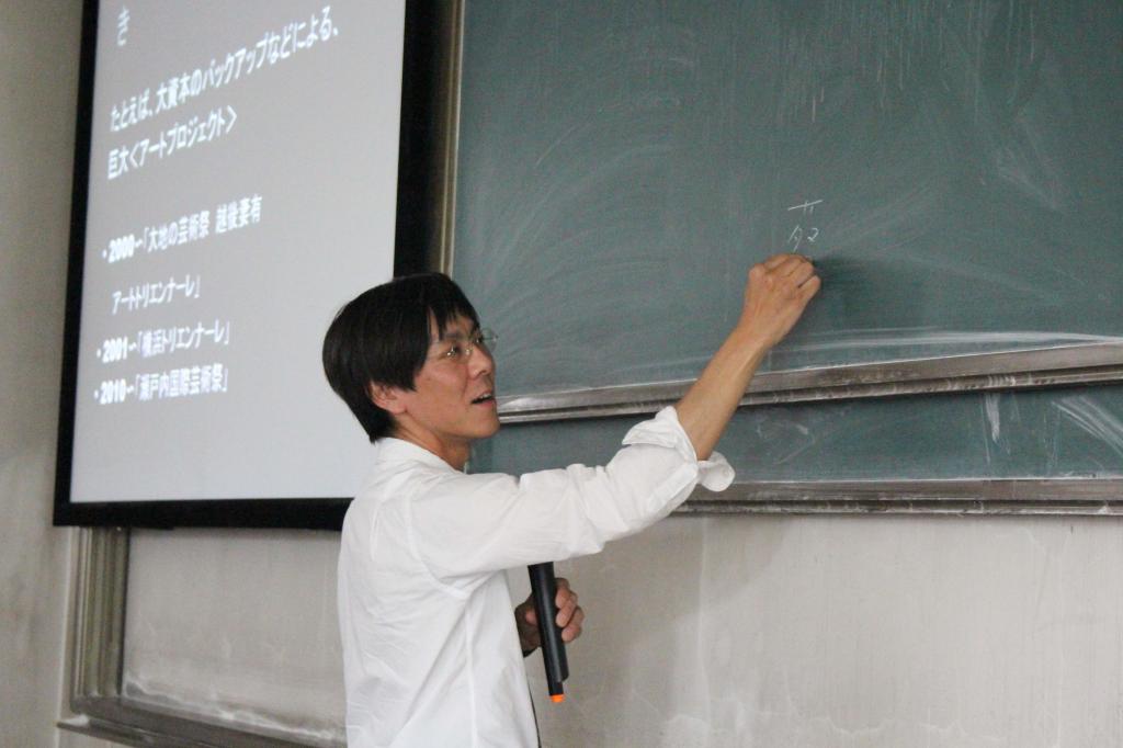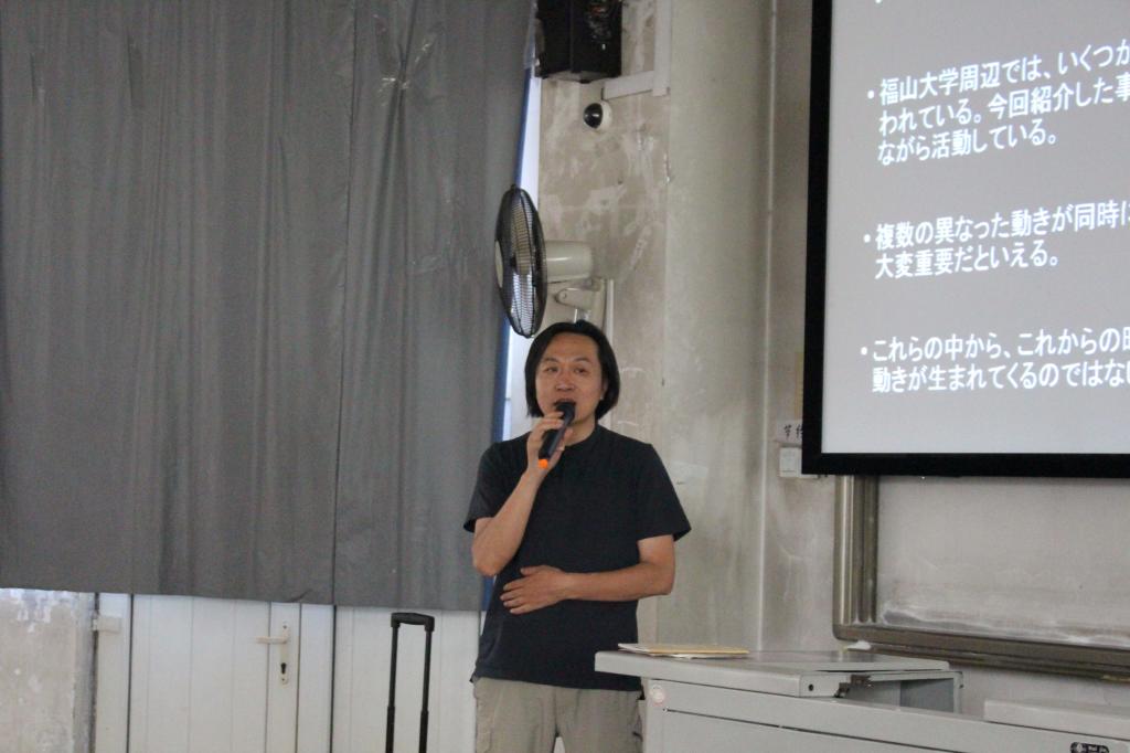 安田晓教授介绍了福山大学内部的主要体系以及近年来日本盛行的地方与艺术相结合的艺术活动,围绕福山和尾道两个地区阐述了其地域间的艺术交流方式,详细讲解了当地艺术作品,使同学们了解了当地人文、自然景观与实践作品的结合方式。随后,安田教授针对房屋拆迁改造的过程从不同角度向大家阐述了他对艺术的理解,提出创作来源于生活,生活离不开艺术的创作理念。