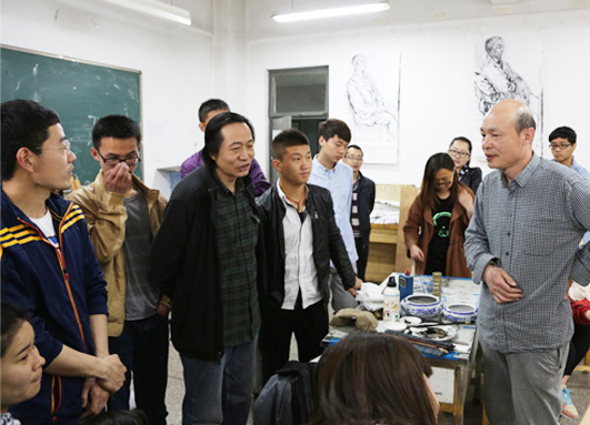 此次活动中,许老师首先看了我们关于写意人物的作业,并作了精彩讲评。老师主要给我们讲了四点内容:首先,画好写意画除具备一定艺术天分外,还需要高超的造型能力和辛勤刻苦的投入。其次,好的中国画家要具有较高的文化素养,尤其要热爱祖国的传统文化,从古典文学和古典哲学中理解中国画审美精神的真谛所在。第三,中国画家要懂得写意精神,懂得追求意境、意趣的审美高度;要涉猎书法,通过书法艺术的抽象美进一步体会中国画崇尚高简的美学境界。第四,画家还要热爱生活、关注人生。要有高尚的人格、大爱的胸怀、广阔的视野等,艺术高峰的攀登绝无轻松坦途可寻。