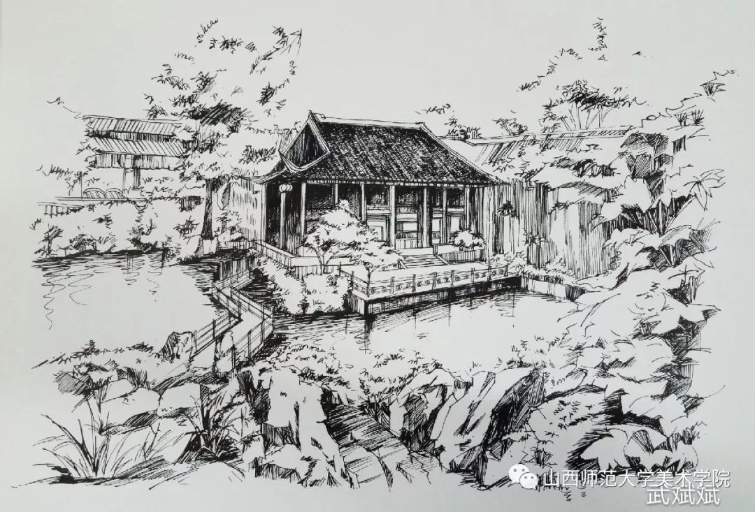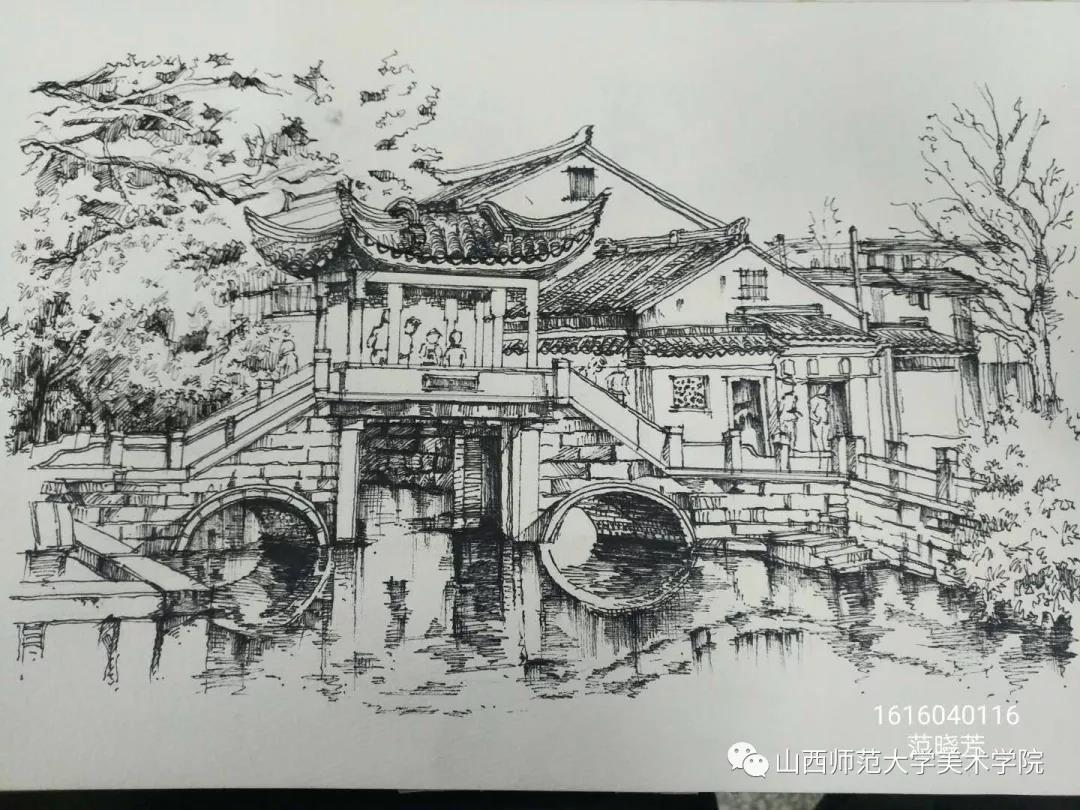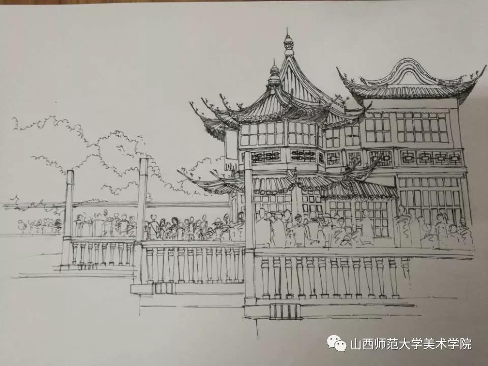 本次考察作业要求通过钢笔速写或者钢笔(水彩)淡彩,以及考察报告总结本次的考察成果。虽然画面中还呈现出或多或少的问题,但是同学们能够积极适应并用画笔描绘出自己眼中的空间艺术,并对考察内容有自己独特的见解,与老师和同学积极进行沟通和交流。希望同学们通过本次外出考出考察亲身体验和观察,开阔眼界、增长见识、提高审美、拓宽知识面。从自然景观中受到启示,学习古人的传统智慧。从都市设计的案例中,实际体会设计人员所应具备的基本素质要求,以培养自己的观察能力、分析能力、表现能力、设计能力,以及和专业相关的综合素养。
