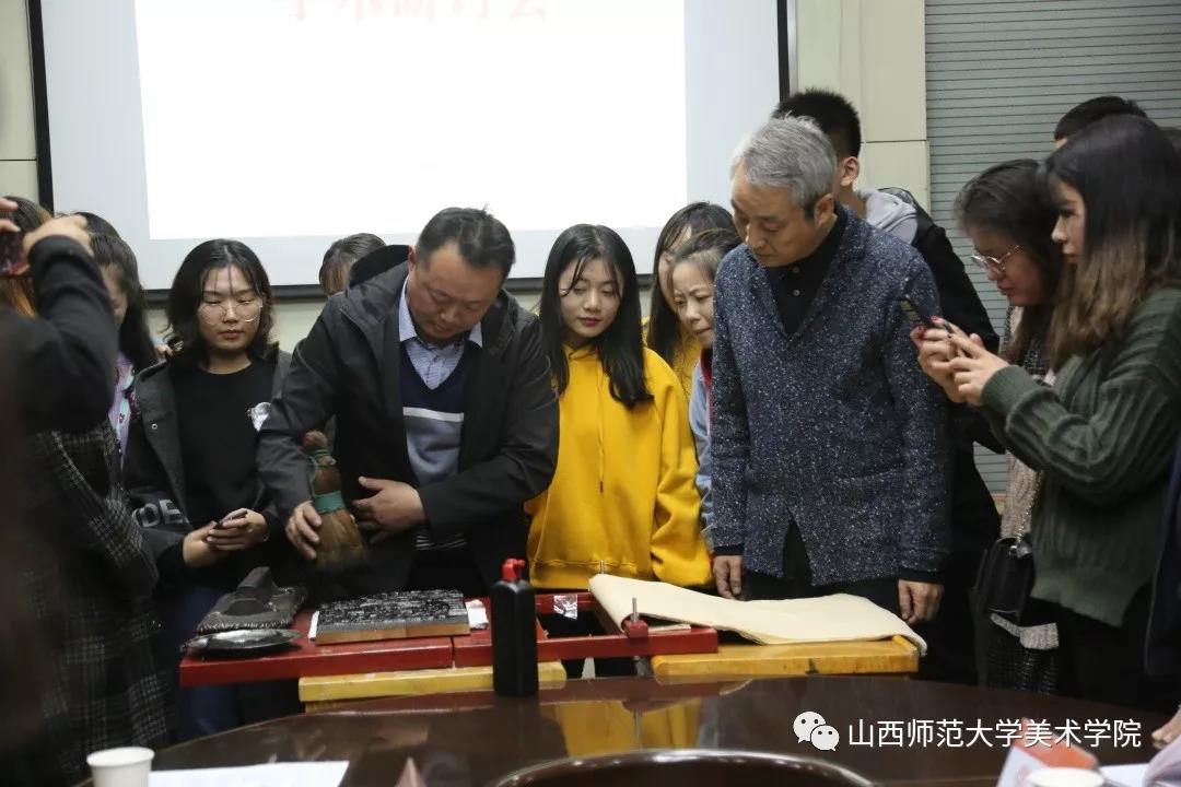 的师生是一次难得的学习交流机会,对于非物质遗产的继承、宣传、保护是有着重要意义的。通过本次讲座,不仅让同学们对民间美术有了更深的了解,同时也继承和发展了中国的木版年画,弘扬了中国优秀的传统文化。