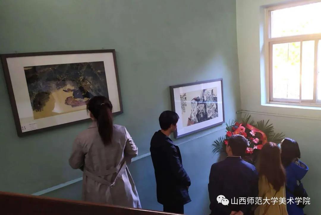 作品展览现场,迎来了众多领导、嘉宾和书画爱好者。大家纷纷向前,仔细品读王莹老师画中的笔墨韵味。