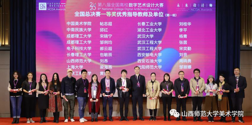2020年11月14日,未来设计师“第八届艺术设计教育研讨会暨第八届全国高校数字艺术设计大赛(NCDA)颁奖典礼”在历史文化名城嘉兴市隆重举行。本届赛事共有1106所高校参赛,共征集60113幅作品。各个赛区45%的作品入围全国终评,入围国赛的非命题类作品再按照5%、8%、12%的比例分别评选出一、二、三等奖,即国赛一二三等奖占作品总数的比例分别为2.25%、3.6%、5.4%。
