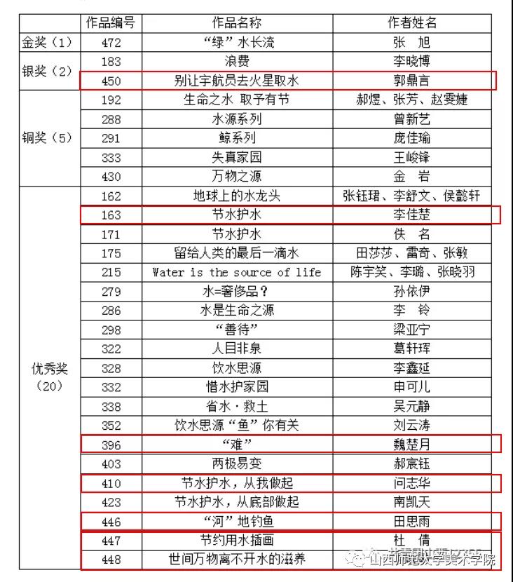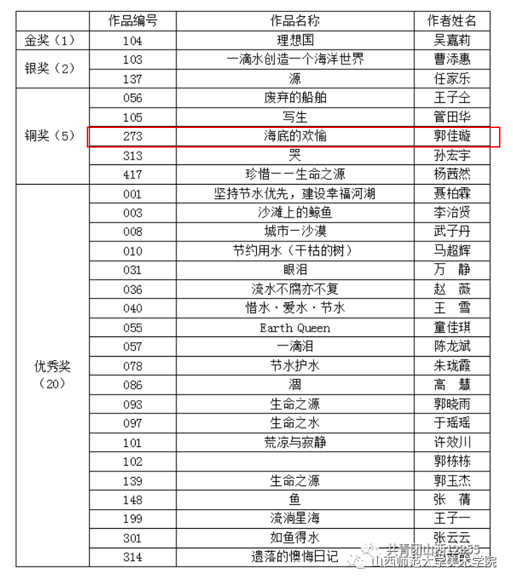 学生共荣获9个奖项。其中网络人气奖1项;美术成人组铜奖1项;设计类海报组银奖1项、优秀奖6项。