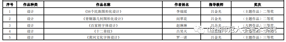 本届美展分为毕业作品展、“三晋艺彩 晋艺传承”工艺美术及非物质文化遗产主题展览两个展览板块,展览共有56所高校参加,共征集到作品1200余幅(件)。我校师生作品最终在本届毕业季美术作品展中荣获一等奖3项、二等奖8项、三等奖12项、优秀奖12项。