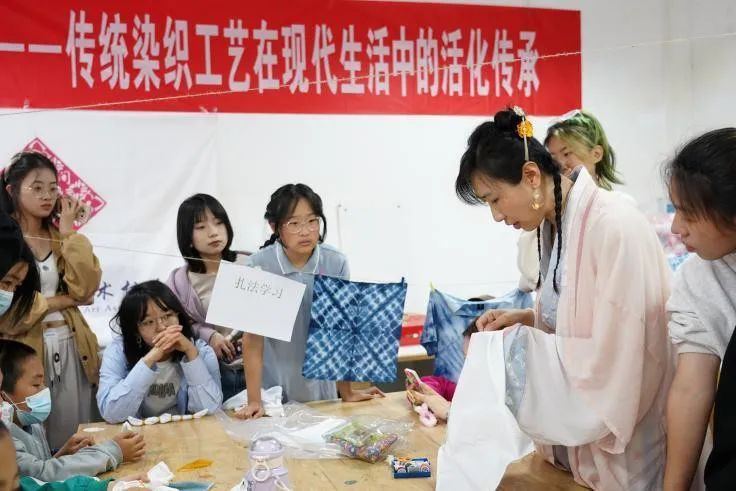 为扎实推进学习贯彻习近平新时代中国特色社会主义思想主题教育走深走实,贯彻落实习近平总书记视察山西运城重要指示精神,提升文化遗产保护传承水平,带领同学们了解和学习蓝染印染工艺之美,丰富日常生活、提升幸福感、放松心情,同人动漫