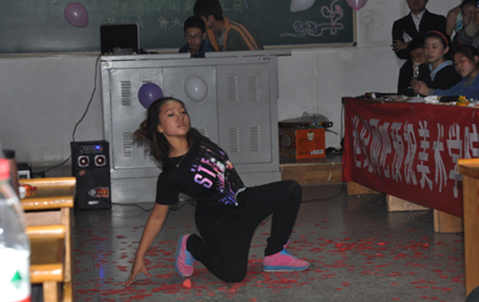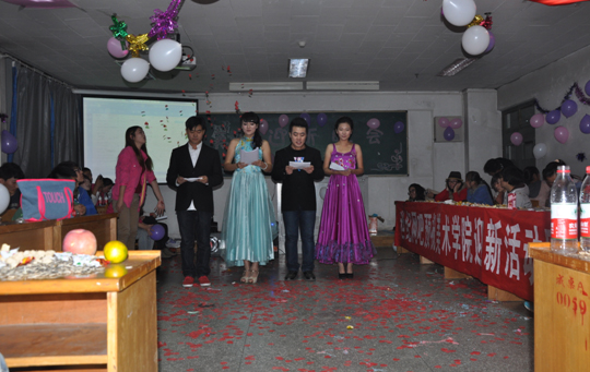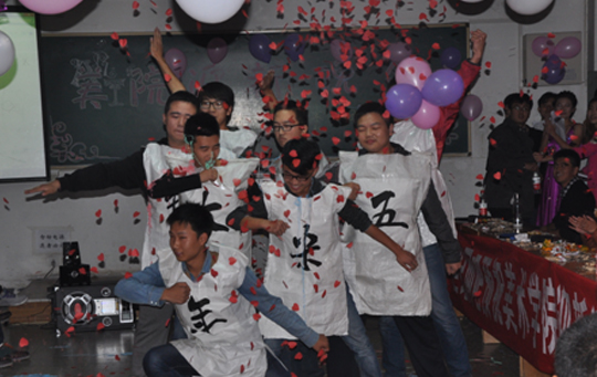 2013级新生迎新晚会“WE ARE YOUNG”在12106教室举行。此次活动由院团委,学生会主办,民间美术协会承办。院领导吴文国老师、政治辅导员贾娟老师、赞助商兰先生以及大一全体新生参加了晚会。晚会群星灿烂,活动气氛高涨热烈。节目丰富多彩、类别纷呈。如大气蓬勃、风情万种的舞起鸣乐、时尚炫酷的街舞表演、搞笑捧腹的小品相声等。开场舞《博回蓝天》,乐起的瞬间,就将所有的同学的心境领入民族风情之中,演出同学轻灵娴熟的节奏、动感激情的舞姿、无不感染在场的所有观众。