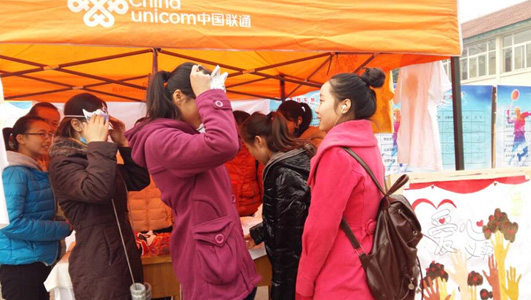 学生亲手制作的涂鸦面具、DIY制作的装饰品、绘画的彩色衣服案等,精美的“产品”吸引大量“顾客”来采买。“青青之垒”的社员们感谢各位“顾客”的爱心购买,感谢他们为孤寡老人献出的这一份真诚心意。这个冬天,因为有大家而感到温暖。这个冬天也因为有大家而充满阳光。