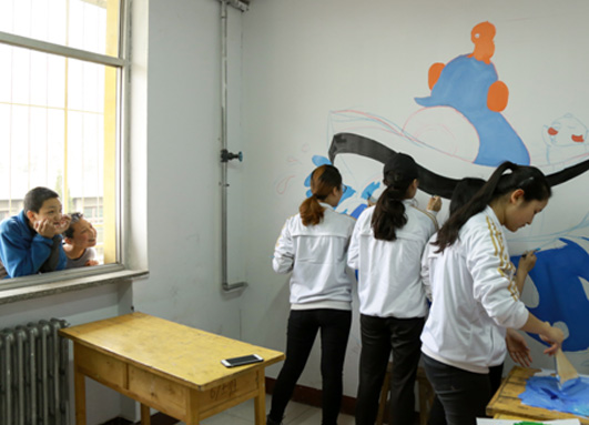 本科生党支部和院团委联合组织的“特别的爱献给特别的你” 义务墙绘活动在临汾特教学校隆重开启。来自高年级的学生党员、团员青年和“青青之垒”学生社团的志愿者20多人参加了活动。