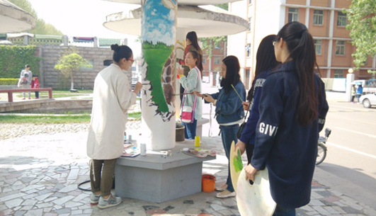 在墙绘活动的现场,同学们积极配合,分工合作,秩序井然,在同学们的认真绘制下,一幅幅墙绘作品就呈现在大家面前,学校周围的围墙、楼梯、蘑菇亭等成了色彩缤纷的图画世界,给大家带来了一个舒适惬意环境,成为校园里一条亮丽的风景线。墙绘结束后,备受师生们的青睐,大家纷纷驻足品评,赞不绝口。