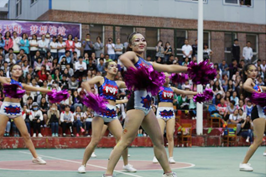 5月6日下午,全校啦啦操比赛在灯光篮球场火热开展,同人动漫